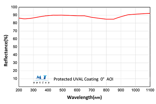 金屬反射膜 是一種采用鋁、銀、金等金屬材料,通過電子束蒸發(fā)或磁控濺射制備的光學(xué)功能涂層,該涂層利用金屬中自由電子的強(qiáng)反射特性,在較寬的波長范圍(紫外至紅外)內(nèi)實現(xiàn)高反射率(例如銀膜在可見光下的反射率>95%);該涂層制備工藝成熟,光譜響應(yīng)范圍寬,具有一定的光吸收損耗,適用于需要高反射率和低損耗靈敏度的場合,例如光學(xué)反射鏡、激光腔反射鏡、紅外探測器光路、太陽能集熱器等,是傳統(tǒng)反射式光學(xué)系統(tǒng)中的核心器件。